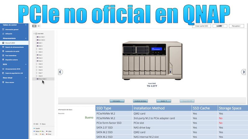 En la versión 4.3.3 de QTS podíamos utilizar cualquier tipo de adaptador o de disco PCIe como disco de almacenamiento, pero en la versión 4.3.4 eso cambió. A partir de esta versión sólo podemos utilizar su propia tarjeta PCIe QM2 para realizar esta función.
